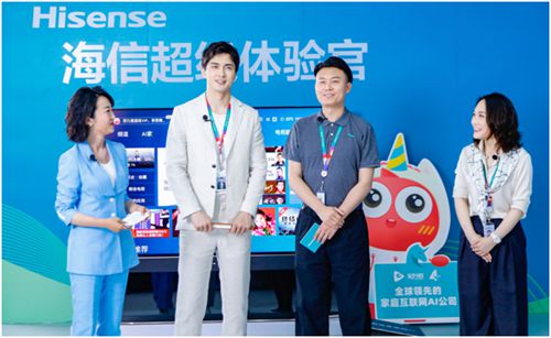 在体验社交电视时,高伟光跟甜甜圈来了一场“云见面”,通过六路视频同时聊天。海信聚好看科技副总经理许晓蓉介绍,“海信社交电视是行业内第一个实现6路视频通话的大屏交互电视,以前是天涯共此时,现在是天涯共此屏。”