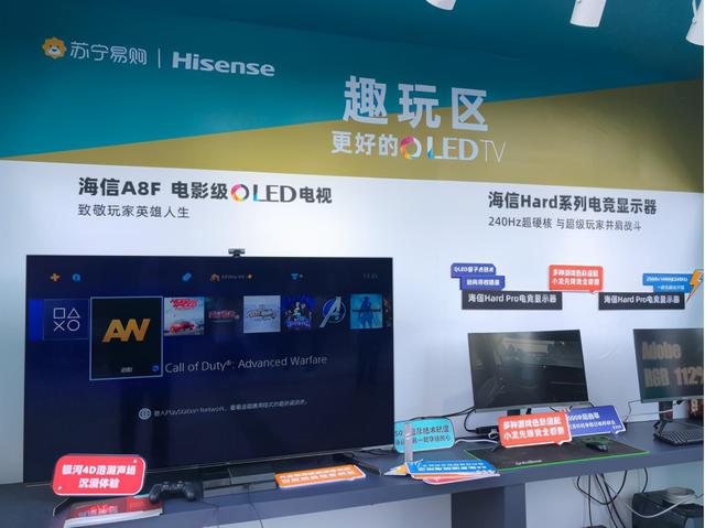现场趣玩区,海信OLED自发光屏A8F也引来一众粉丝围观。OLED天生极致的黑,搭配暗部细节无损输出,在树林里也能看清敌人的埋伏,MEMC运动侦测补偿,高速运动画面更流畅清晰,让英雄来去自如。