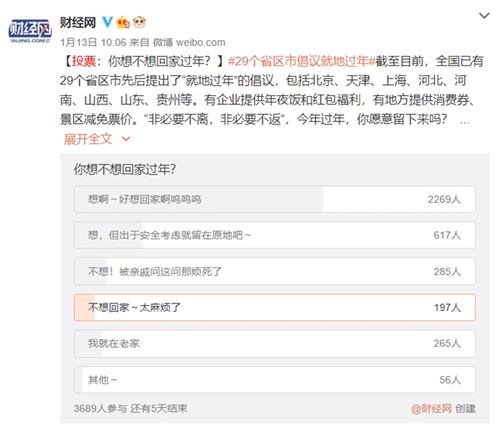 1月13日,2021年除夕火车票开始销售,距离农历新年的到来已越来越近。然而,由于元旦过后疫情出现反复,多地政府倡导“就地过年”,很多朋友今年都会成为“原年人”(原地过年的人)。