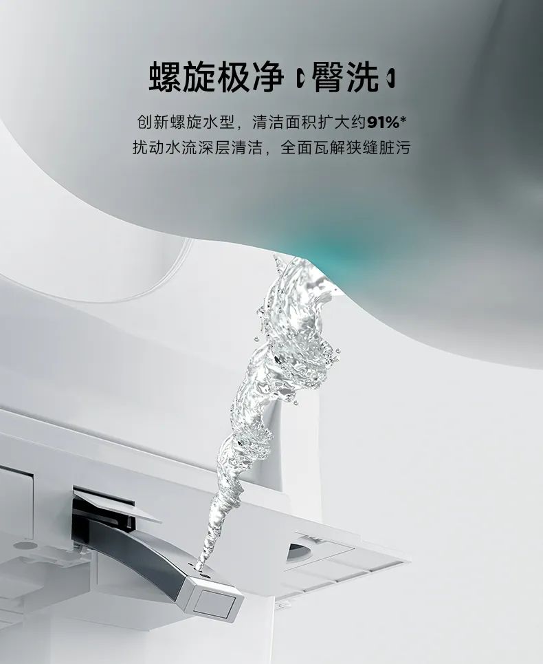 在传统水洗清洁的基础上,希箭智能马桶X6更追求个性化舒适的健康水洗,使用创新螺旋水型,清洁面积约4400mm2 ,比常规臂洗清洗面积扩大约91%。大面积扰动水流深层洁净,清洁力非常强,可全面瓦解狭缝脏污,让每次便后享受舒适清洗。