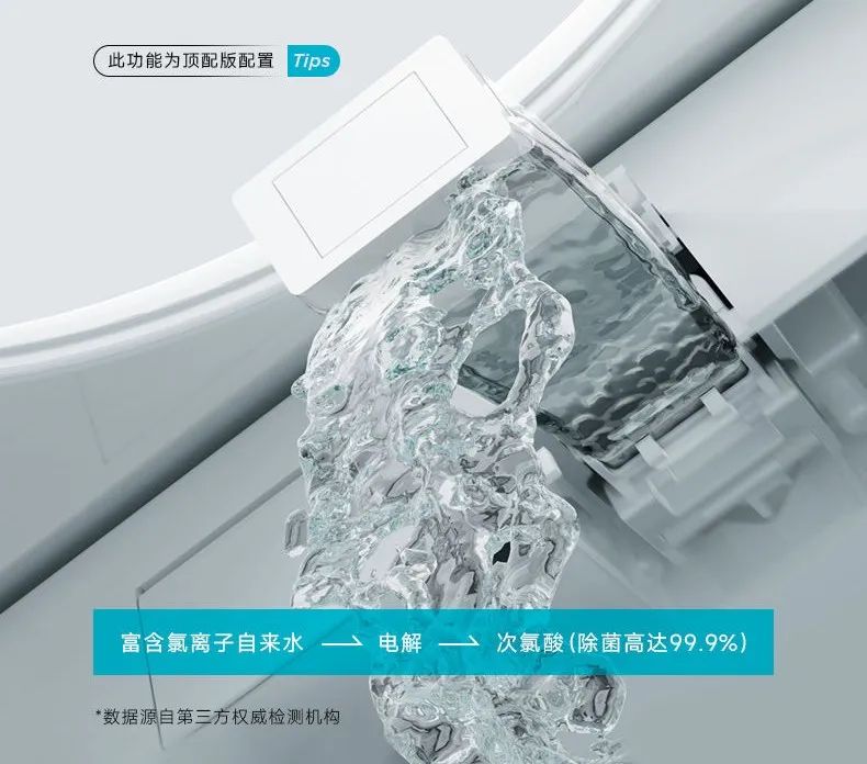 X6抗菌喷杆会在每次水洗前后,进行电解水强力消毒,避免水洗二次污染,为我们提供可靠的抗菌保护。电解水喷杆技术就是利用自来水中的水和氯离子,电解产生次氯酸溶液,可达到99.9%除菌效果。