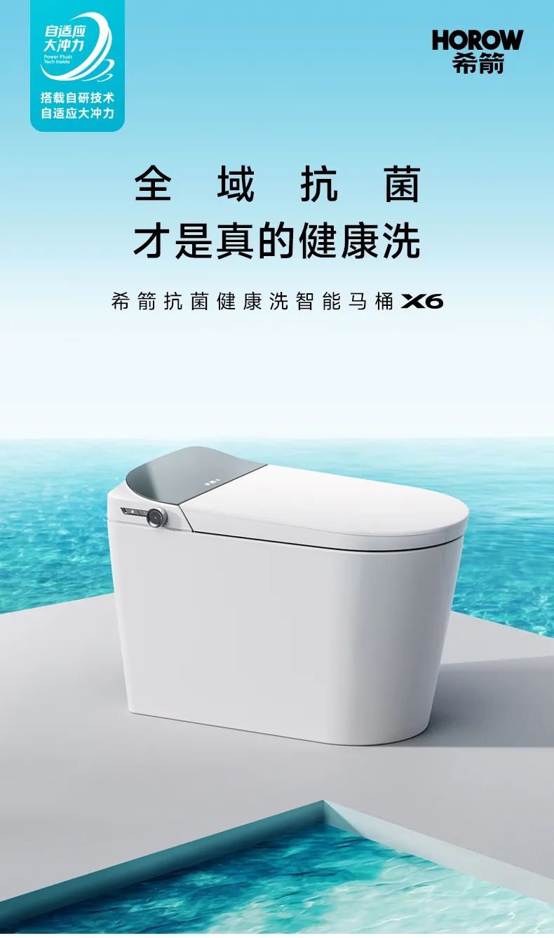 为了从根源解决这个问题,希箭在大冲力智能马桶的基础上继续精进,从接触抗菌到空间抗菌,创新打造全域抗菌健康洗智能马桶X6,其功能配置黑科技感直接拉满。此次X6上市,实现了真正的全[菌]覆灭,树立洁净如厕新标杆,不仅是家居生活升级改善型超豪华旗舰马桶,更是爱干净人士健康坐享主卫的首选智能马桶。