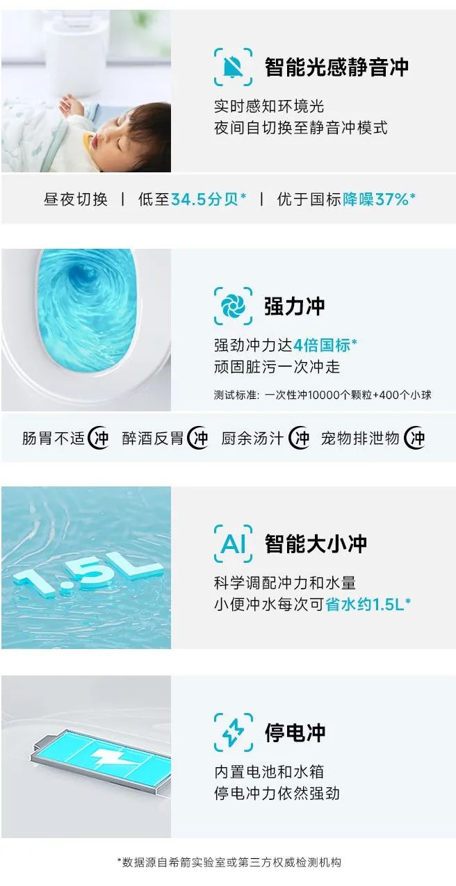 全时段智慧超感知技术,随时为你每一次如厕提供润物无声的呵护。