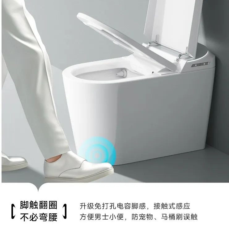 同时还设置了微波翻盖、脚触翻圈、离座自动冲水等触控感知功能,轻松解放你的双手。