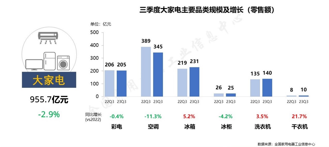 11月17日,由中国家用电器研究院指导、全国家用电器工业信息中心编制的《2023年中国家电行业三季度报告》在京发布,并通过线上媒体进行直播。三季度在全年经济运行中具有承上启下的关键作用,从对三季度家电市场的分析中,也将大致看到2023年的市场全貌和发展趋势。