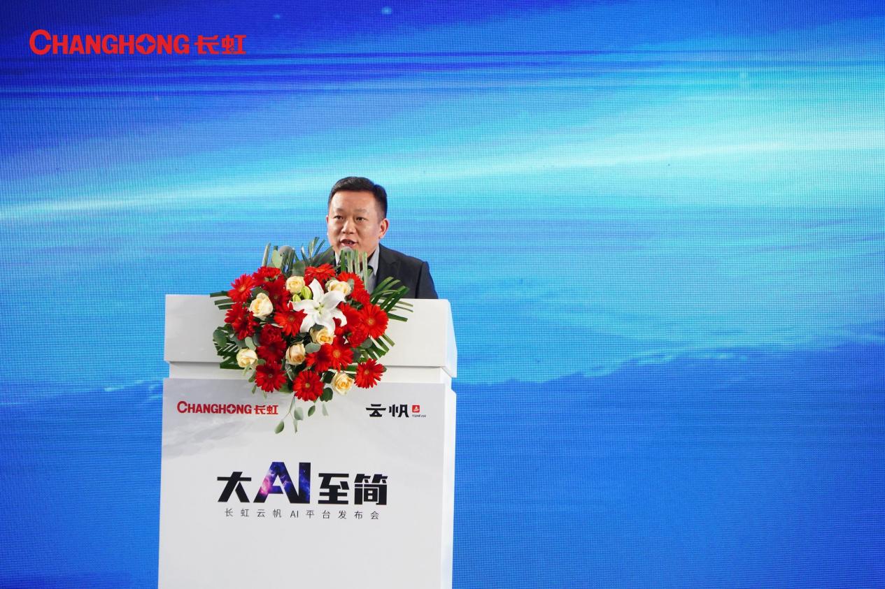 长虹多媒体产业公司总经理李春川重磅发布了云帆AI平台,它的出现让电视使用超简单、交互超方便、功能超强大。云帆AI平台拥有多维感知、多重理解、多任务管理、多模交互、内容激发的五大能力,它可以“如你所愿”、“知你所想”、“懂你所需”。