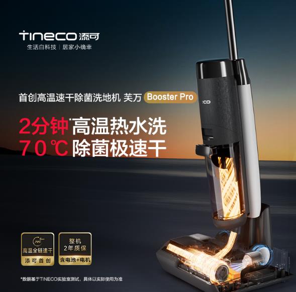 以芙万Booster Pro为例,它作为添可的年度“明星产品”,凭借卓越性能表现荣获“洗地机性能优级认证”“家用和类似用途真空吸尘器清洁能力等级认证”及“物联网产品网络安全认证”三大权威认证。芙万Booster Pro搭载添可最新5分钟高温全链速干技术,一举解决了传统热风烘干技术慢、半干、不卫生等缺陷,带给用户全新清洁体验。