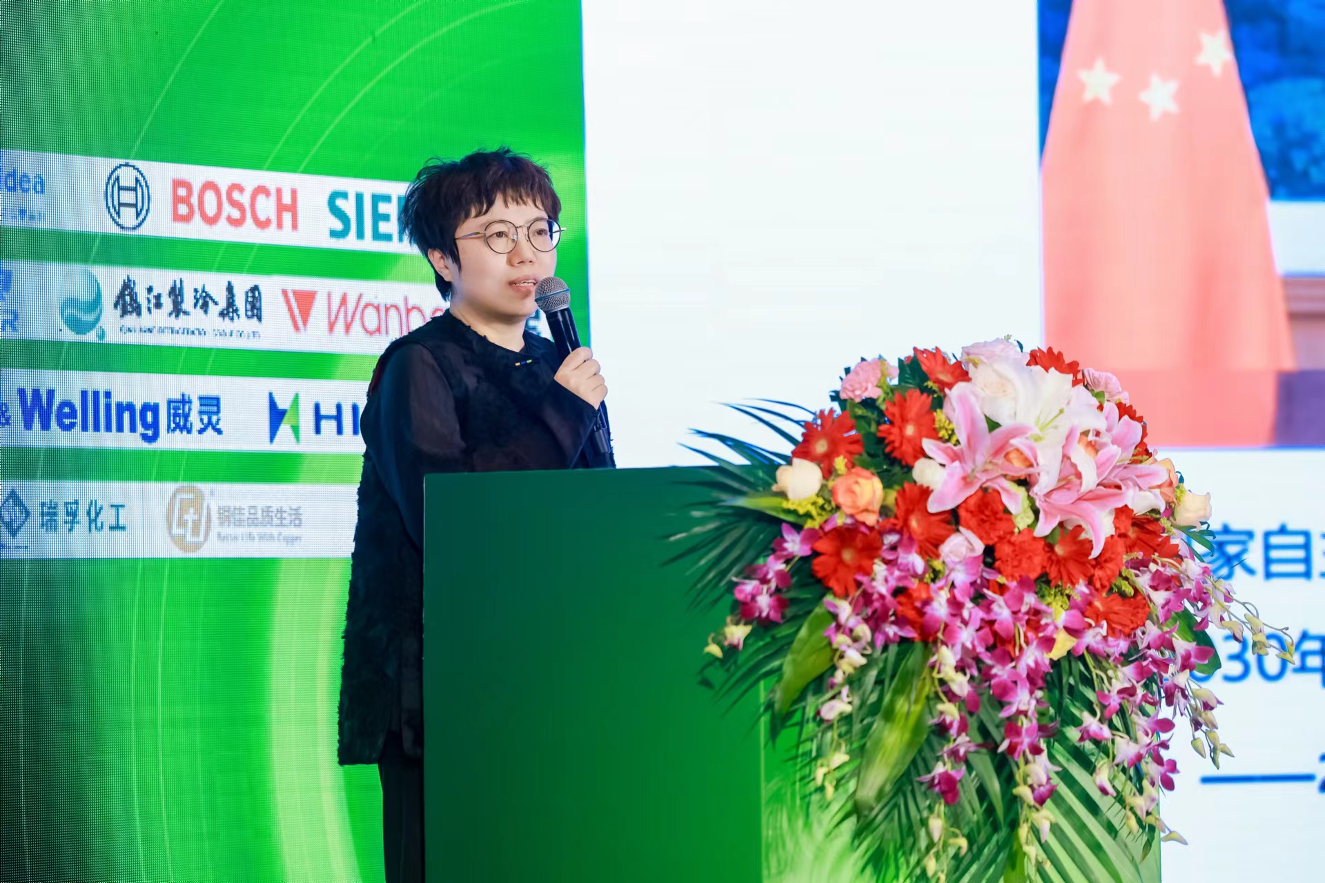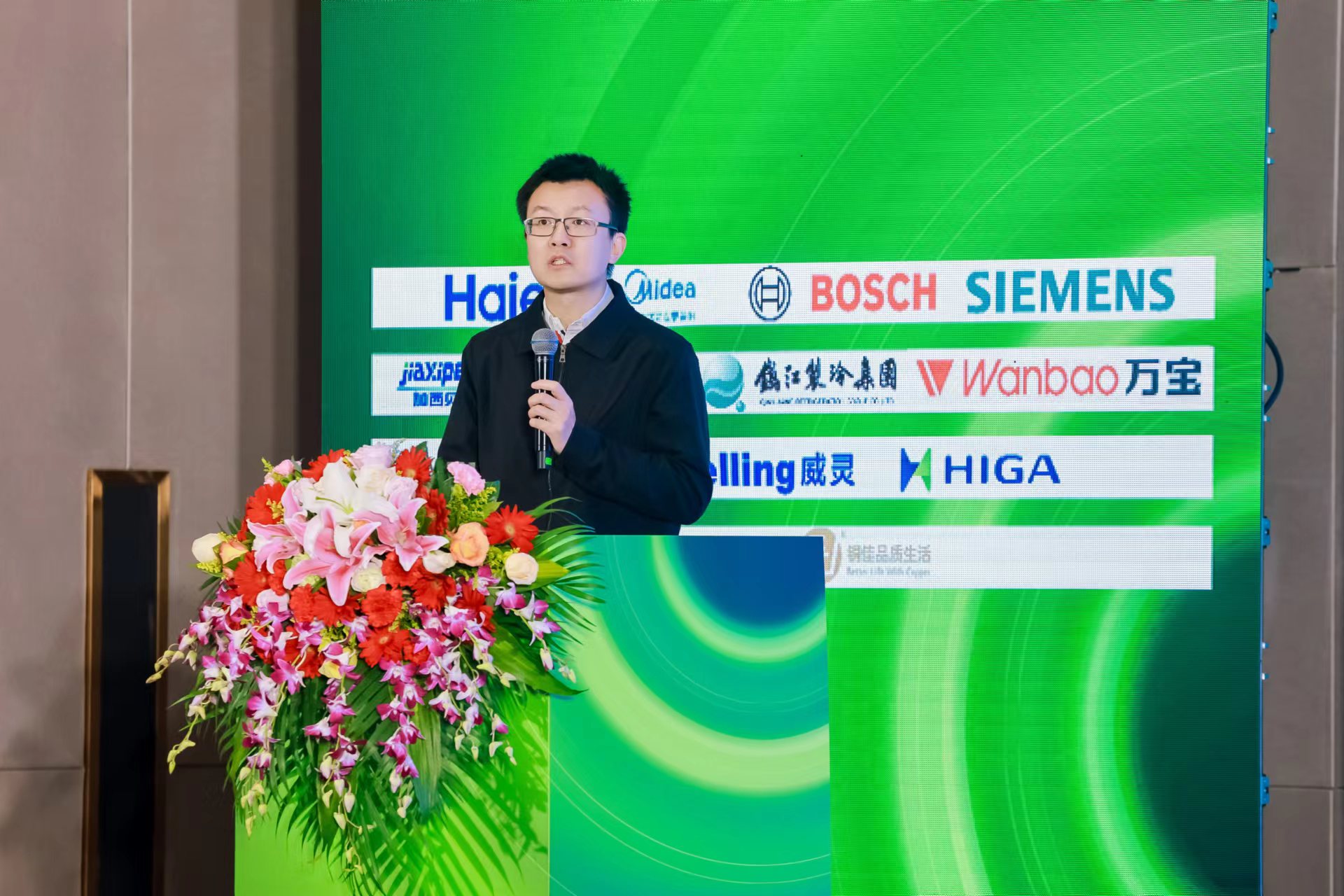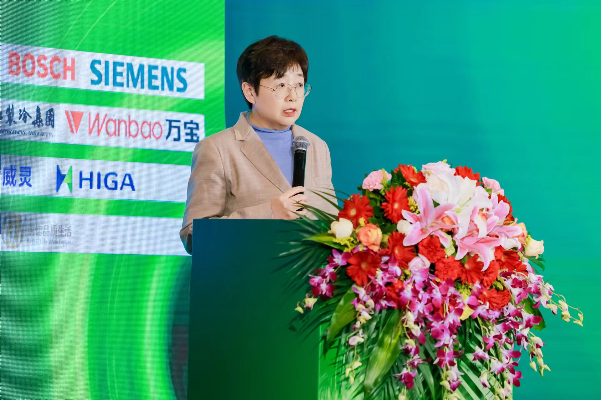 国际铜业协会中国家电和技术创新项目经理鲍宁分享了国际铜业协会在推进家电行业可持续发展方面做的一些工作。据她介绍,国际铜业协会一直致力于推动铜的合理和有效的使用,面对现在国际上绿色低碳的趋势,除了推动铜工业的净零碳发展目标之外,也在联合上下游企业,将铜在家电作为关键零部件材料方面的绿色和低碳进行一些探索和研究。“比如,铜在空调和冰箱上的应用。在空调方面,我们通过小管径技术进行增效和节材。从2009年开始这项技术应用到现在,减少了1万吨温室气体的减排。”她举例说。
