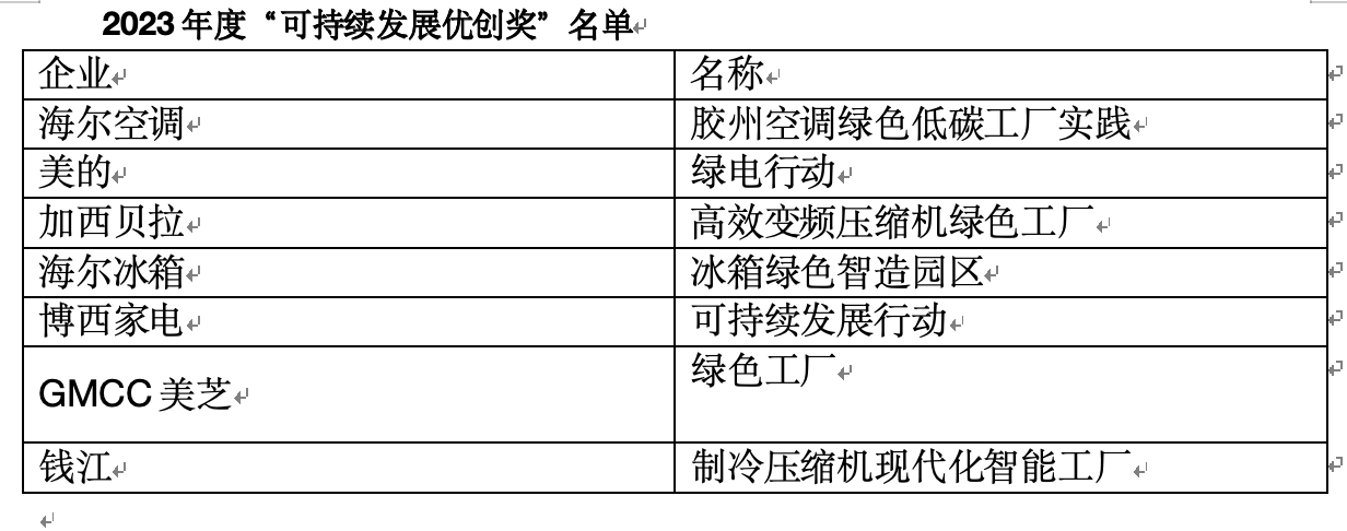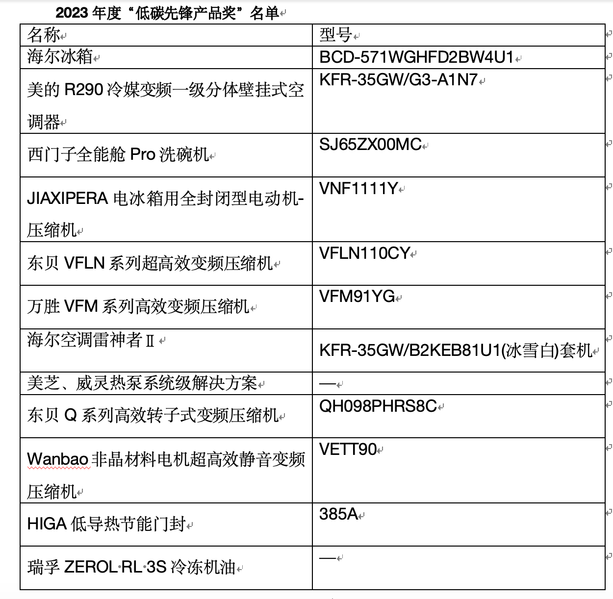 其中,海尔胶州空调绿色低碳工厂实践、美的绿电行动、加西贝拉高效变频压缩机绿色工厂、海尔冰箱绿色智造园区、博西家电可持续发展行动、GMCC美芝绿色工厂、钱江制冷压缩机现代化智能工厂获得“可持续发展优创奖”。12款产品或解决方案获得“低碳先锋产品奖”。