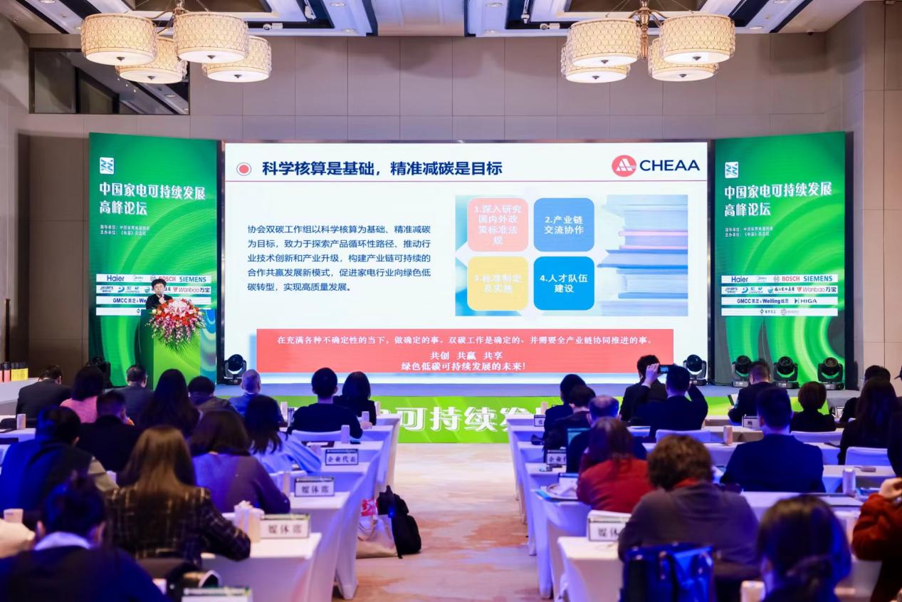 2024年1月18日,由中国家用电器协会指导、《电器》杂志社主办的“中国家电可持续发展高峰论坛”在北京隆重召开。会上,中国家用电器协会副秘书长万春晖介绍了中国家电产品碳足迹核算体系建设情况,中国家用电器协会发布的全球首个家电产品碳足迹核算系列标准,助力家电行业低碳绿色发展。