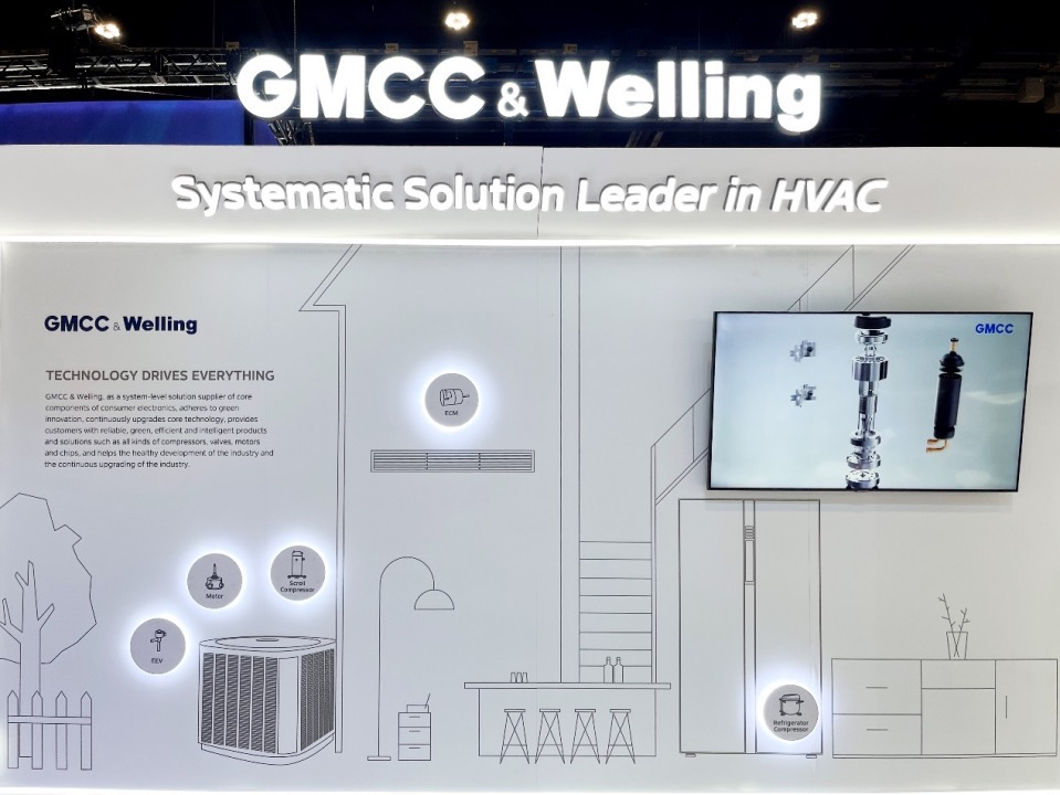 此次亮相美国暖通制冷展,美的集团工业技术旗下消费电器核心零部件系统级解决方案供应商美芝(GMCC)、威灵(Welling)展示了一站式暖通制冷产品与解决方案。聚焦家用场景,针对北美家庭采暖制冷需求,展示了覆盖风管机、热泵采暖和热泵热水、冰箱及窗机空调的丰富解决方案。美芝定速涡旋压缩机和定速转子压缩机采用先进的设计和制作工艺,并使用环保冷媒,使产品能效显著提升;针对低碳节能的热泵产品,美芝热泵采暖转子压缩机引入变频技术,在-40℃蒸发温度下制热性能依然优异;在冰箱冰柜和窗机空调领域,美芝冰箱冰柜超高效变频压缩机可以助力省电高达20%,窗机空调转子压缩机每年则可节省45KWH的电量。