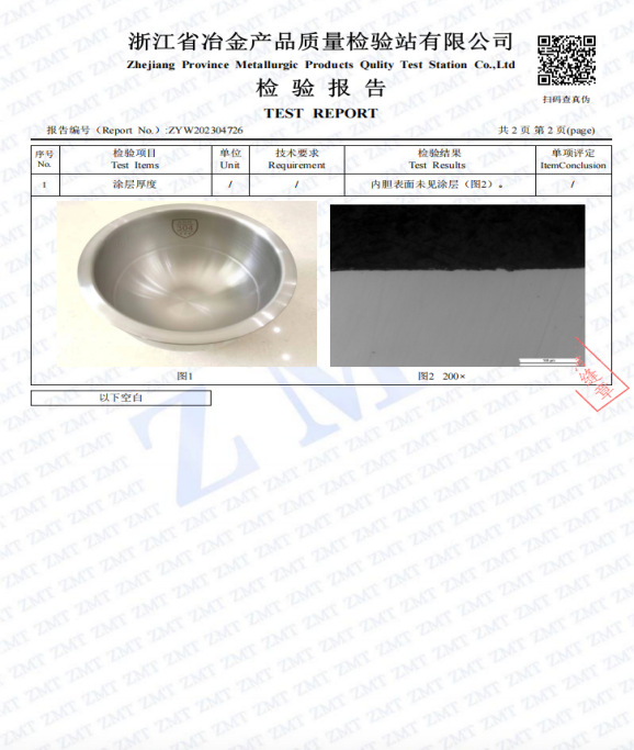 图:九阳获得中国家用电器研究院“0涂层电饭煲”认证证书;经由权威检测机构检测结果显示九阳0涂层电饭煲“内胆表面未见涂层”。