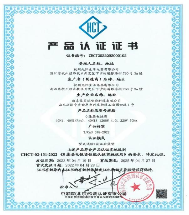 “为了给消费者带来更健康的产品,早在2022年,九阳就推出了第一台不锈钢0涂层电饭煲,内胆采用不锈钢材质,是真正的0涂层内胆。”九阳工作人员介绍,作为“0涂层电饭煲”的发明者,九阳是第一家获得中国家用电器研究院颁布的“0涂层电饭煲”认证证书的企业,同时也是首个0涂层标准技术联盟主导单位。