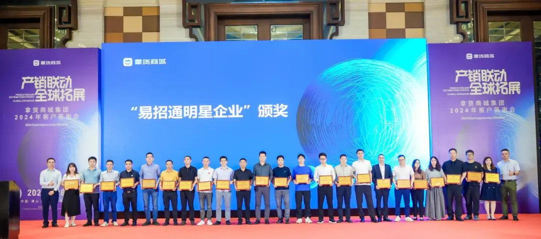 为表彰2023年做出突出贡献的合作伙伴单位,答谢会现场隆重颁发了“易招通明星企业”、“优秀跨境企业”、“风雨同舟”三大奖项,获奖企业凭借出色业绩和和衷共济的合作精神成为合作伙伴标杆。