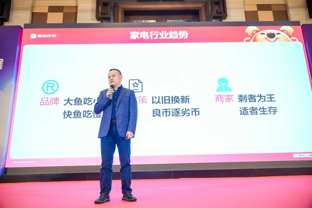 深圳康佳电子科技有限公司中国区电商总经理郭春雷进行了战略合作品牌分享。郭春雷表示,拿货商城集团把生产、供应、销售整个链条整合在一起,具有重要意义。郭春雷介绍,自去年开始分管电商业务,在沟通合作的过程中感受到了拿货商城的坦诚高效。在与拿货商城合作之后,2023年的后4个月销售情况较前8个月提升了10倍。“这个团队给我的感觉是效率高,执行快。”郭春雷这样谈与拿货商城团队合作的感受。