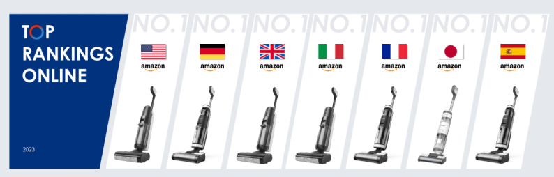 当添可在国内市场所向披靡的同时,其在国际市场的表现也令人振奋。在2023年7月及秋季亚马逊Prime Day期间,添可洗地机在北美及欧洲市场重要站点的市场占有率以绝对优势位居第一,销售额同比分别大涨了54%和120%。而在年末的“黑五”大促期间,添可在北美、欧洲、澳洲等各大国家站点中均稳居市占第一,销售额同比增长超100%。目前,添可已经为全球超过1200万*消费者和家庭提供了服务。