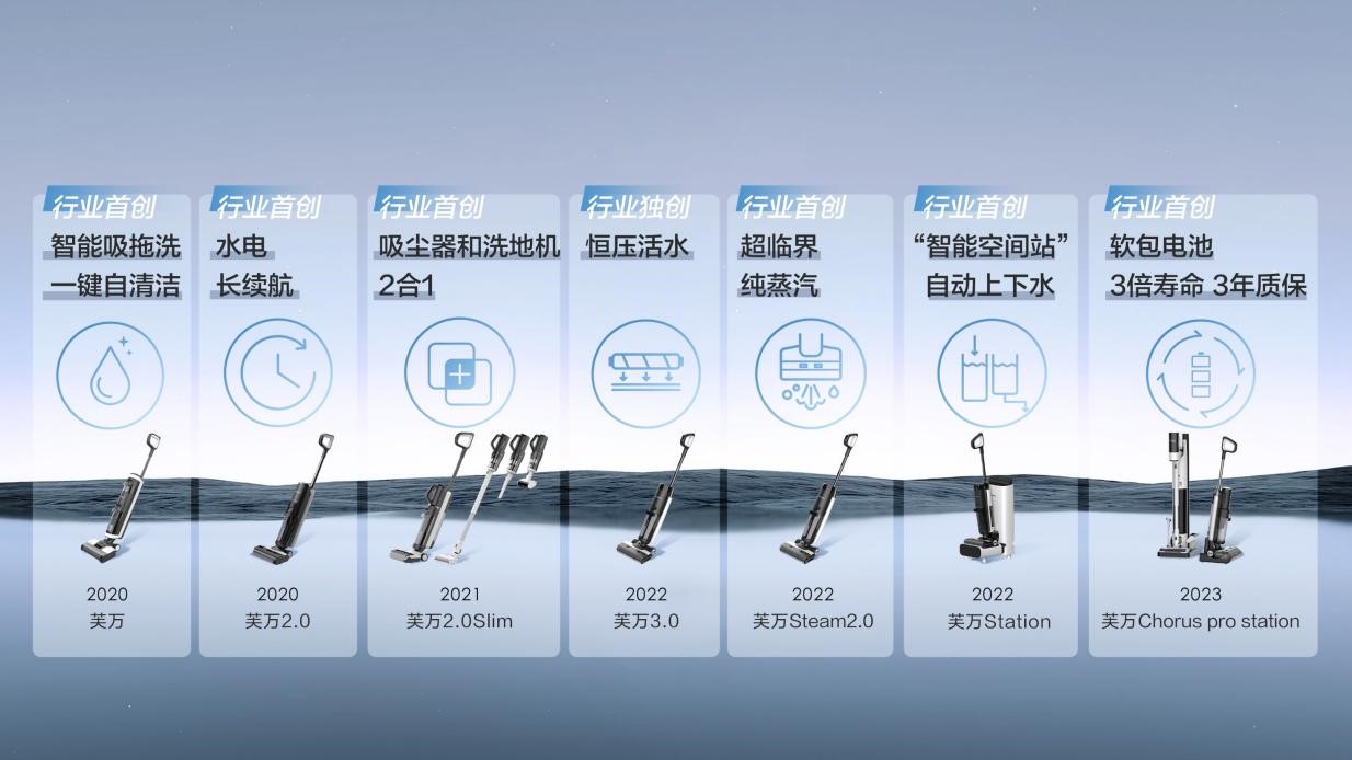 2020年,添可首次推出芙万系列智能洗地机,正式开创了洗地机这一全新赛道,始终不负消费者期待,持续领跑行业。