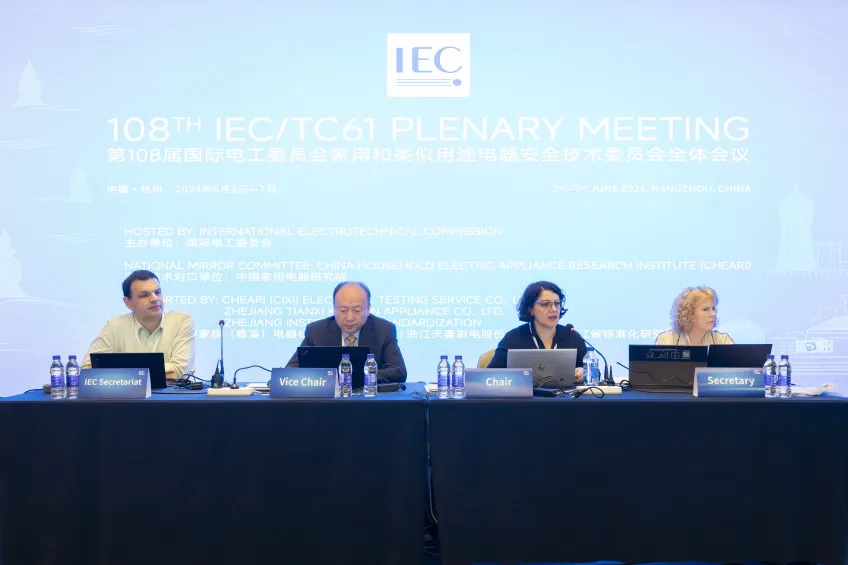 2024年6月3日,由国际电工委员会主办,中国家用电器研究院作为国内技术对口单位,中家院(慈溪)电器检测服务有限公司、浙江天喜厨电股份有限公司、浙江省标准化研究院联合承办的第108届IEC/TC61全体大会在杭州正式召开。会议将重点围绕IEC/TC61的架构重组以及IEC 60335系列中34项标准涉及的51项提案进行讨论。