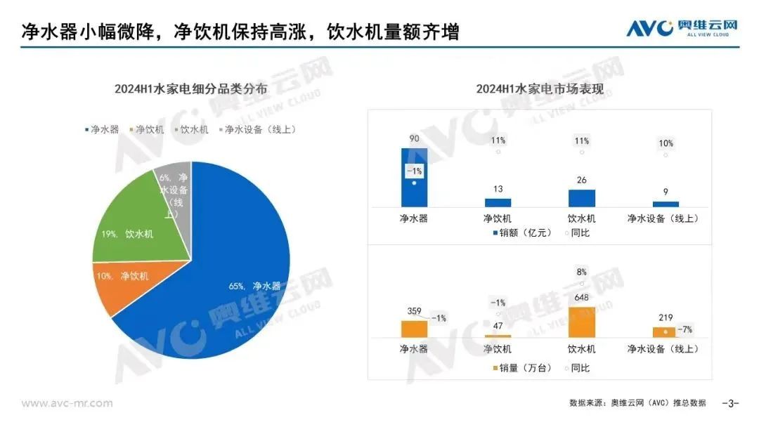 奥维云网推总数据显示,2024年上半年,上述水家电产品的市场零售额为138亿元,同比上涨3%,零售量1274万台,同比上涨2%。这一数据表明:净水产业发展,已经由产品价格普及,进入到用户需求驱动的新阶段。