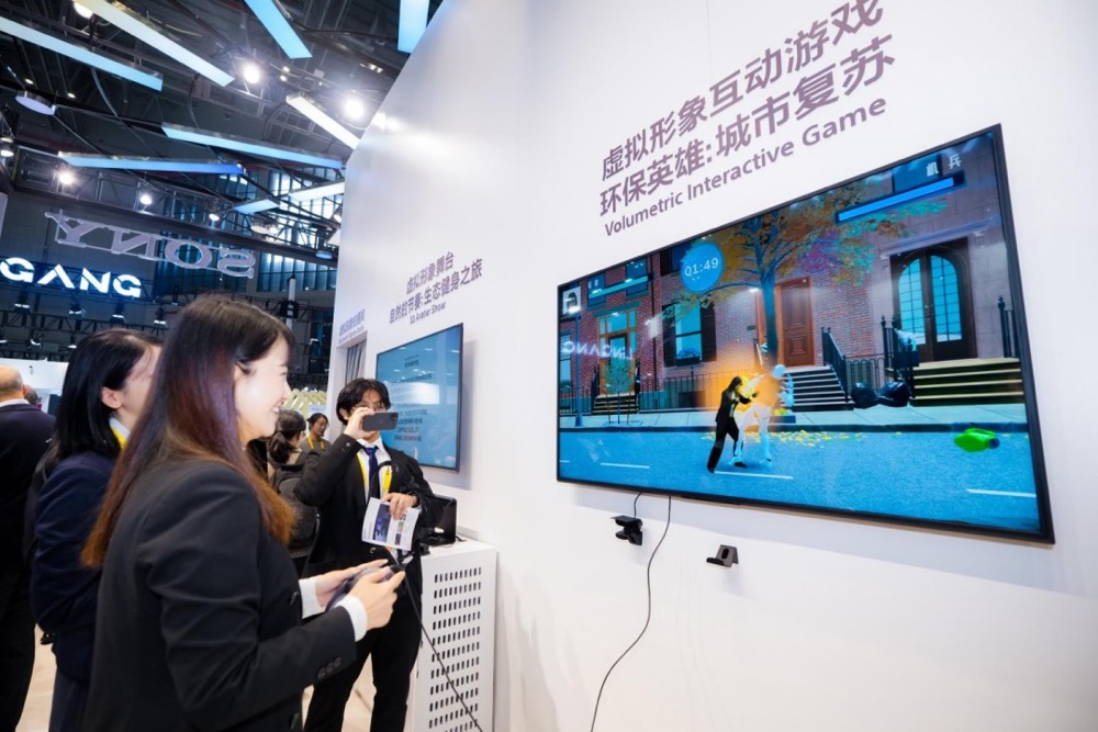 索尼虚拟形象捕捉解决方案,参观者可体验拍摄并创建自己的 3D 虚拟形象,并使用自己的虚拟形象,游玩互动游戏,体验自己成为游戏主角,感受科技带来的沉浸式体验。在展台,参观者可首先在360度影棚中拍下自己的形象数据,通过索尼AI驱动的3D模型重建算法,快速生成自己的3D形象,而后可操作自己的3D形象化身环保英雄,进行互动游戏。或通过索尼空间现实显示屏(SRD),观看自己的3D形象在绿色清新的大自然环境中进行一场行走或奔跑,体会别样的感动。该技术可在游戏制作、XR沉浸娱乐、虚拟拍摄等领域提供更丰富的创意解决方案。