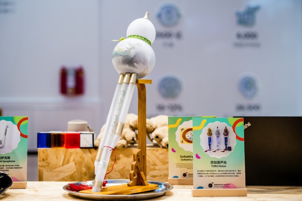 悠如音乐,一个集结文化创意、科技创新与公益事业于一体的全民音乐创意文化项目,致力于实现“让每个人都享受演奏乐器的乐趣”的愿景。该项目旨在通过开发一系列“悠如乐器”,让没有任何音乐基础的人也能迅速上手弹奏和合奏,索尼集团是该项目重要的合作伙伴。在进博会的展台上,悠如音乐在全球首发了一款结合中国传统乐器与现代科技的悠如葫芦丝原型机,半透明的外观,其中内置了索尼低功耗AI开发板Spresense,具备模拟多种乐器演奏的能力,用户只需对准吹嘴哼唱,便能吹奏出旋律,极大地降低了演奏门槛。在刚刚举办的2024悠如音乐乐器创客马拉松中国赛中赢得奖项的多个设计独特、创意新颖的悠如乐器也悉数展出。值得一提的是,悠如音乐国际乐队近日迎来了首位中国成员——圈9,同时,索尼还发布了悠如音乐的中国主题曲《点点》,这些都将进一步推动中外音乐文化的交流与融合。