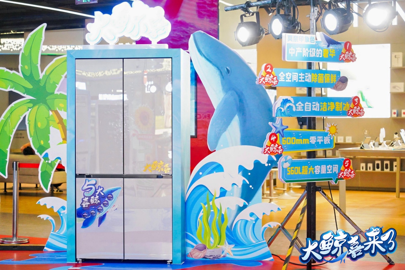 11月15日,美菱五星定制机大鲸喜冰箱560WP9BTZ在合肥京东超体亮相上市。此次新品发布通过一系列的创意活动,向观众生动地展示了产品特点。