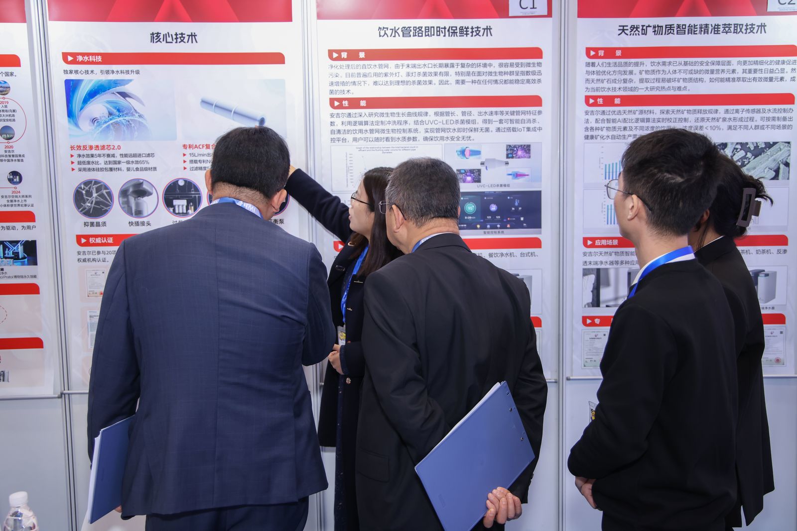 随着人们生活品质的提升,饮水需求已从基础的安全保障层面,向更加精细化的健康促进与体验优化方向发展。精准萃取出有效矿物质微量元素,成为当前饮水技术领域的研究热点之一。本次安吉尔获得金奖的天然矿物质智能精准萃取技术正是突破了该难点,能有效满足不同人群或不同场景的健康矿化水自动生产需求,可用于台式净饮水、咖啡机、泡茶机、反渗透末端净水器等多种应用场景中。此外,同样获得金奖的饮水管路即时保鲜技术则是解决了末端出水口容易受到微生物污染的问题,经过攻坚研发及多项专利技术加持,安吉尔运用一套可智能自消杀自清洁的饮用水管网微生物控制系统,实现管网饮水即时保鲜无菌。
