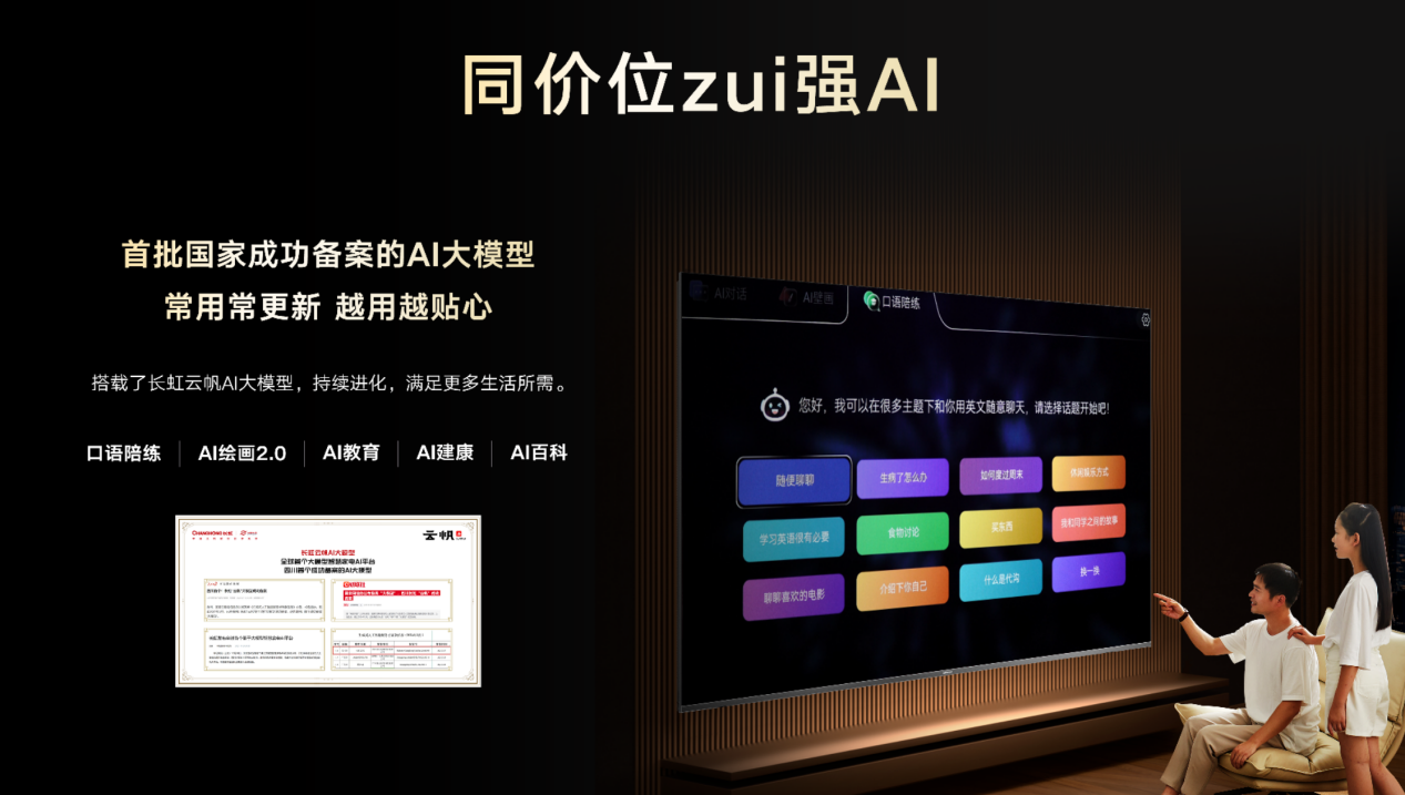同时,京东渠道新品JD1000H也正式亮相。作为万元内唯一天空音壁画电视,它同样具备贴墙、美观、智能、易用的特点,将为用户带来更加极致的试听享受。京东零售家电家居生活事业群黑电业务部总经理张京表示,将进一步加强与长虹的合作,共同推动长虹AI TV的市场销售;同时京东零售家电家居生活事业群全渠道业务部总经理张业伟也表示进一步联合长虹开拓智慧家居业务。
