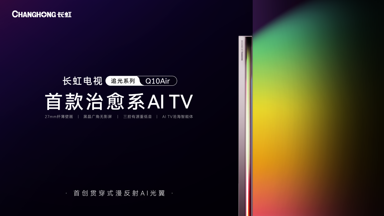 作为行业首款治愈系AI TV,长虹Q10Air搭载高定黑晶无影屏、首创贯穿式漫反射AI光翼、27mm极致纤薄、AI画质修复、三腔有源重低音、AI沧海智能体、魔方桌面、四边平嵌0距贴墙等功能和技术。通过这款创造性、革命性的电视产品,长虹重新定义AI智能电视的行业标准,再次巩固了其在人工智能电视领域的引领者地位!