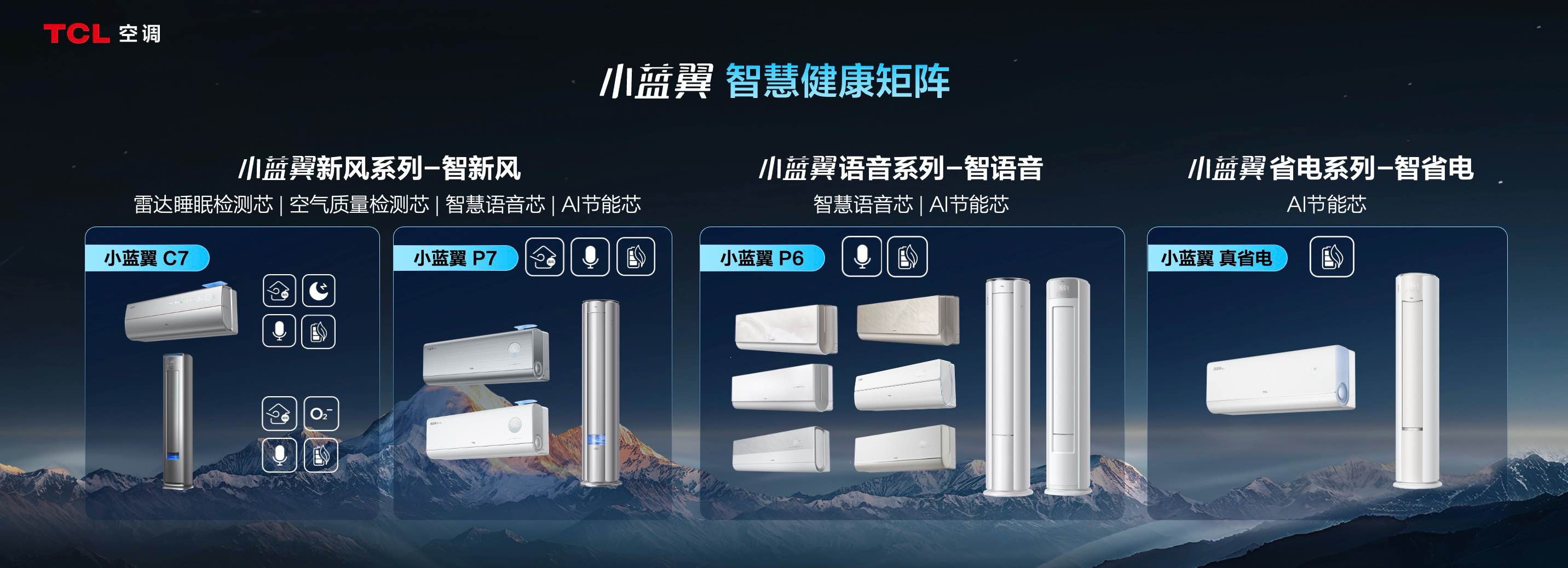 在九大国际领先技术的赋能加持下,TCL空调精准锚定影响用户睡眠质量的关键客观环境因素,打造AI睡眠、AI语音、AI省电三大智慧健康科技,并持续创新推出小蓝翼系列空调“新物种”,向用户提供极致的智慧健康睡眠体验。