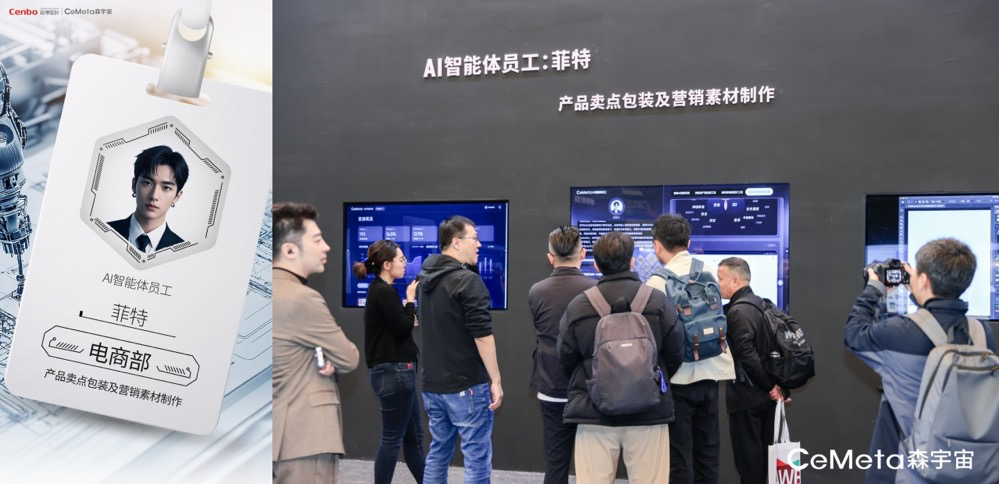 在AWE展会首度亮相的CeMeta AI智能体员工矩阵,是全球首个覆盖“策略-创意-执行-优化”全链路的智能体解决方案,基于母公司森博营科20年的深厚行业积累,其在营销场景中的任务完成能力远超通用型AI工具。