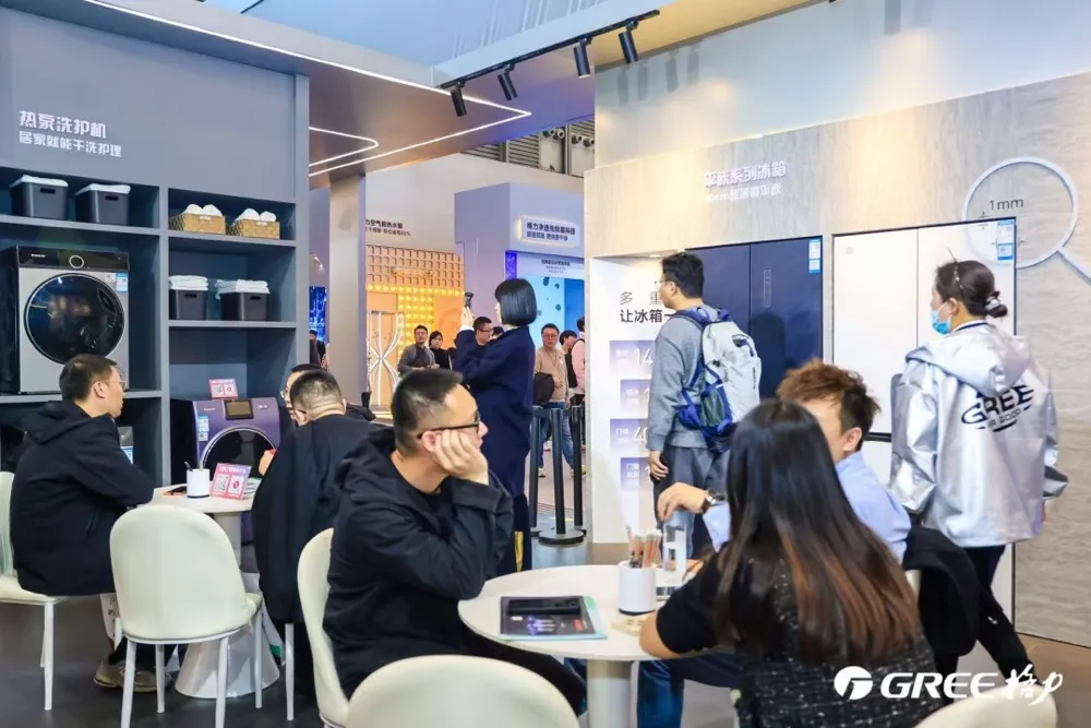 在空调展区,家电圈看到:格力AI动态节能科技系列产品搭载自主研发的空调专用芯片和AI人工智能算法,实现不限时长、不限季节、不限温度、不限风速、不限风向的真省电。格力 “风不吹人” 系列柜机、挂机、中央空调首次集体亮相,零废热空调更是针对热岛效应给出创新解决方案,吸引了众多用户的关注。