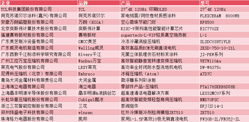 与此同时,2025年度中国家电产业链金钉奖也在万众瞩目中揭晓。该奖项旨在表彰为家电整机性能提升作出突出贡献的零部件企业,其评选结果不仅代表行业顶尖技术水平,更成为衡量配套企业核心竞争力的重要标尺。经权威专家委员会严格审定,最终11项突破性技术方案脱颖而出,荣获金钉奖。获奖名单见下表。
