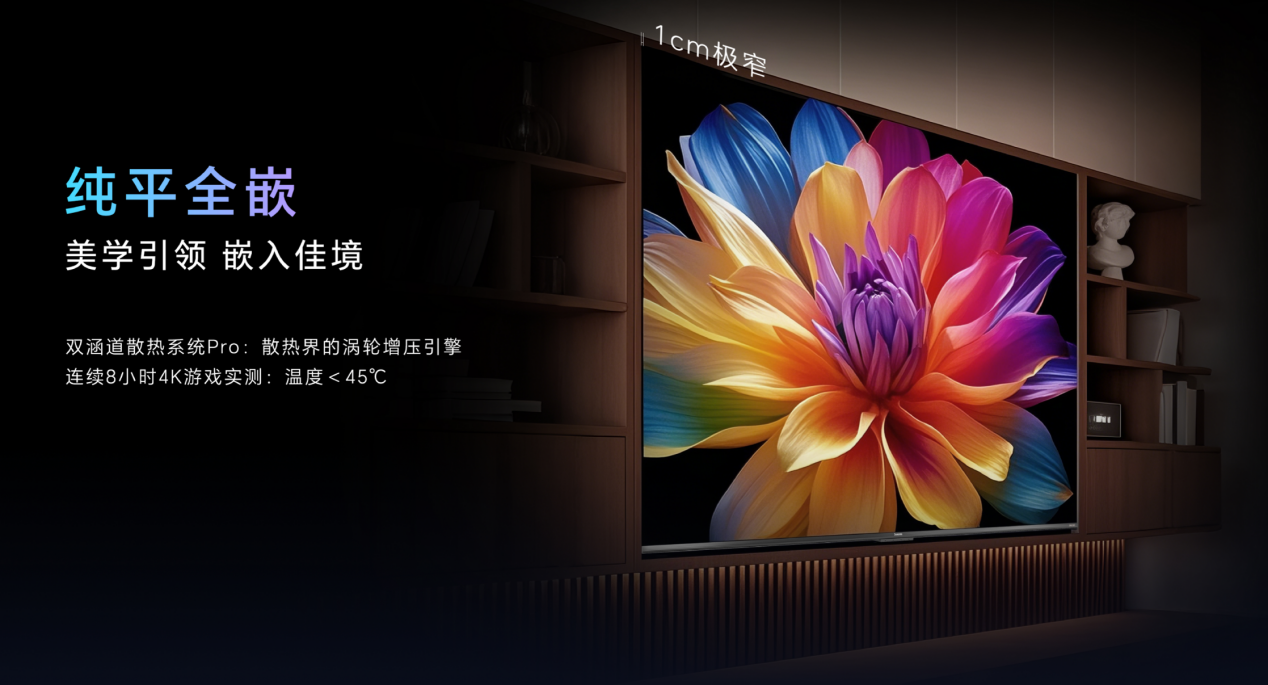 D6H Mini以纯平全嵌的设计,引领了电视外观美学的新潮流。它采用定制超薄伸缩挂架,轻松实现1cm超窄缝隙的纯平全嵌安装,让电视与墙面浑然一体,既节省空间又彰显高端品味。内嵌散热系统更是D6H Mini外观设计的一大亮点。航级铝基大面散热与空气动力涵道散热的完美结合,确保电视在长时间运行下依然保持冷静,为用户带来更加安心的使用体验。