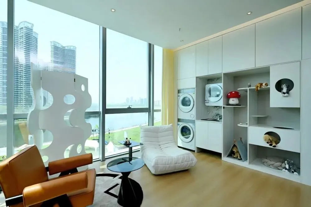 这样的厨房当然不是徒有其表,实际使用体验非常惊艳:冰箱能主动管理食材,烟机自动根据烟量大小调整风量和风压,烤箱可以自主管理温度和时间,洗碗机连锅都能刷干净,还免去了重新摆放碗碟的麻烦。同行的一位老师特意体验了三翼鸟智慧衣帽间的妙处。说一句小优小优,我要换衣服”,柔和的灯光随即打开,搭配舒缓优雅的音乐,瞬间营造出惬意的穿搭氛围,甚至衣柜与配饰柜还是联动的,方便全套穿搭,仪式感拉满。