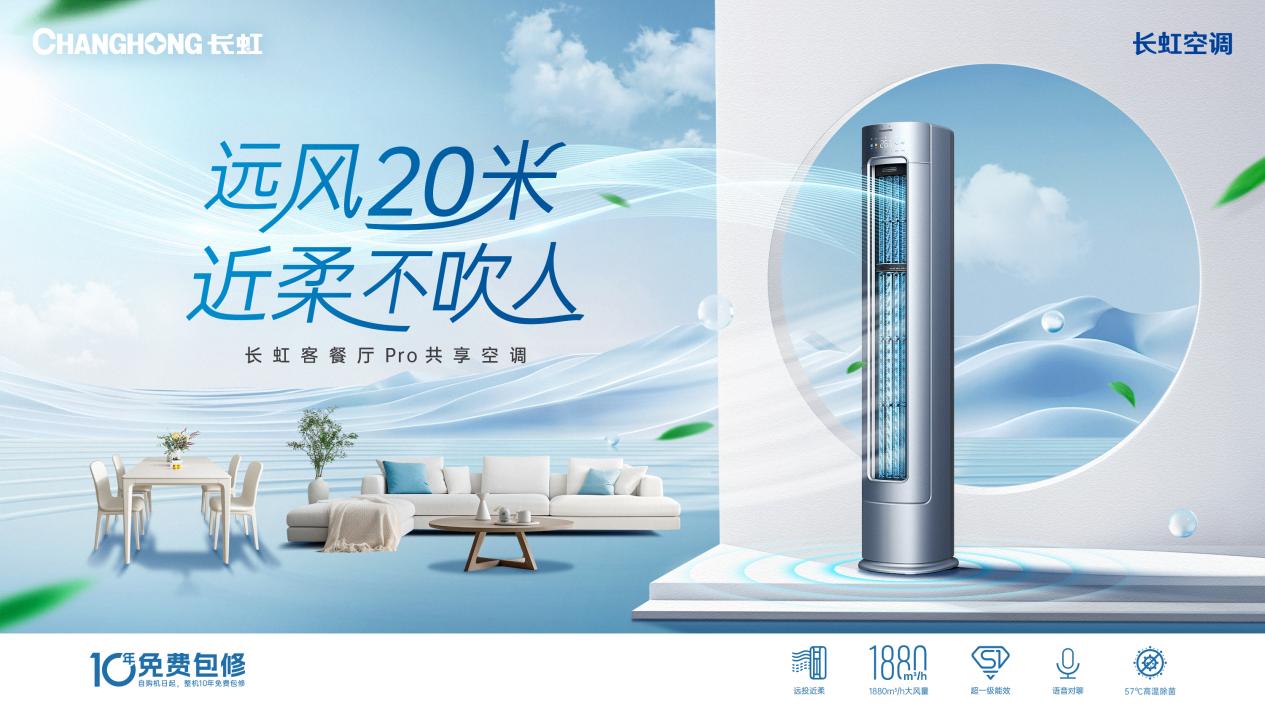 就在这次活动上,长虹客餐厅Pro共享空调亮相,以“凉风知我意”般贴心,为消费者带来更卓越的使用体验。早在 2022 年就长虹空调推出了客餐厅共享空间细分新品类,时隔 3 年,新一代客餐厅 Pro 共享空调在舒适感受、循环风量、智能体验、节能效果四大维度实现全面升级。