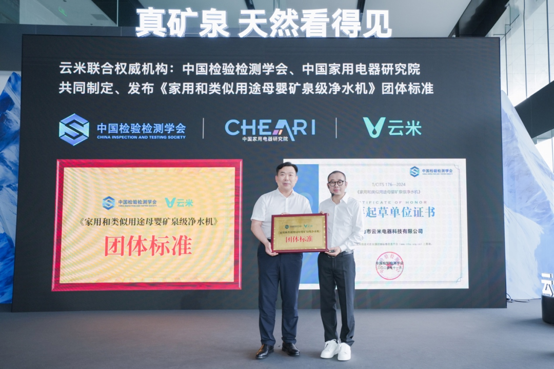 云米科技还联手中国检验检测学会、中国家用电器研究院共同制定并推出行业首个《家⽤和类似⽤途⺟婴矿泉级净⽔机》团体标准,云米昆仑4矿泉净水器也成为行业首台母婴矿泉级净水机认证的产品。