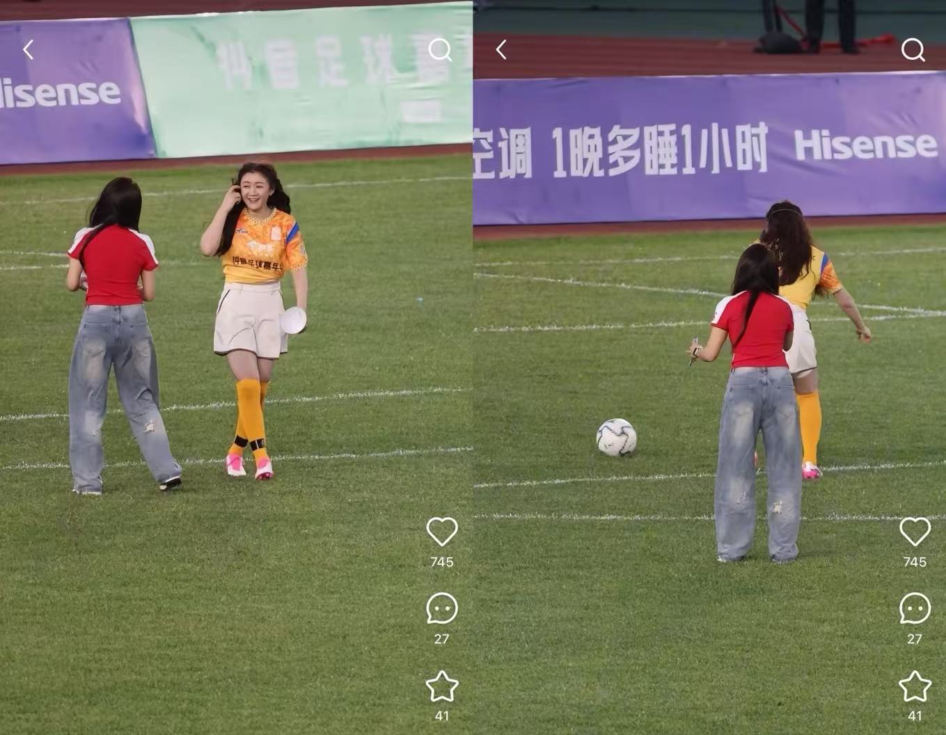 当天晚上,表演赛间歇的互动环节,奥运会乒乓球蝉联冠军、海信家电冠军产品体验官陈梦,身披7号球衣亮相活动并参与射门游戏。巧合的是,在“海信新风空调 1晚多睡1小时”的场边围挡见证下,陈梦打进制胜一球,最终帮助球队取得游戏胜利。