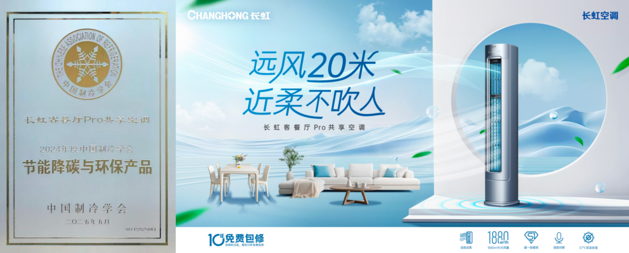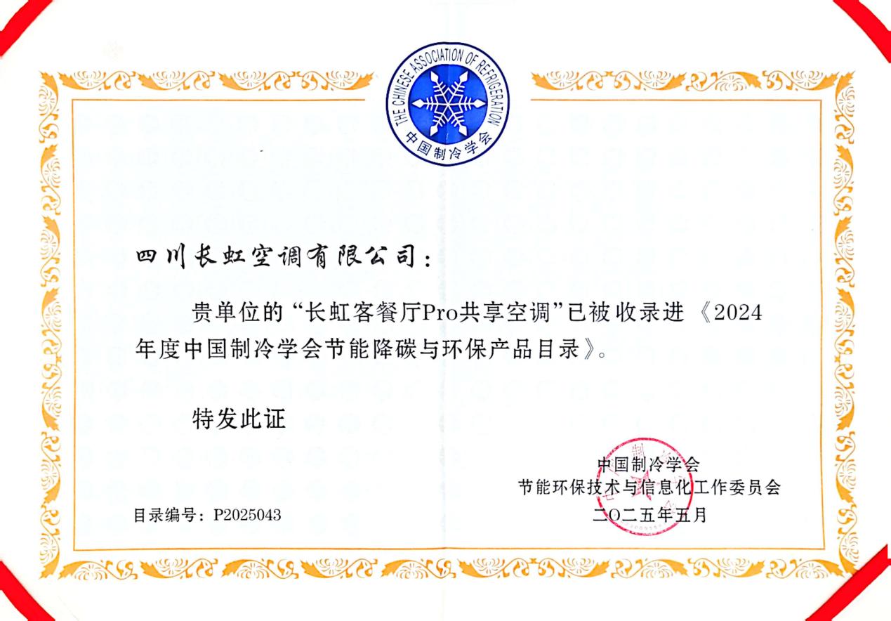 其中,长虹客餐厅Pro共享空调凭借其优良的节能效果与低碳环保特质成功入选《2024节能降碳与环保产品目录》。