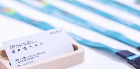 使用OBM环保材料印制的名片和索尼中国可持续发展报告展示