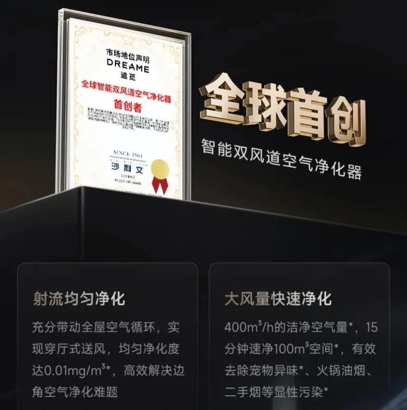 用户的不满意,正是追觅科技的创新突破口:全球首创智能双风道空气净化器,以长达10米的远距离送风,带动全屋空气的循环净化,即使是100平方米大空间,气流可以直达开放式客厅的各个角落,解决“局部洁净、边缘污染”等问题。