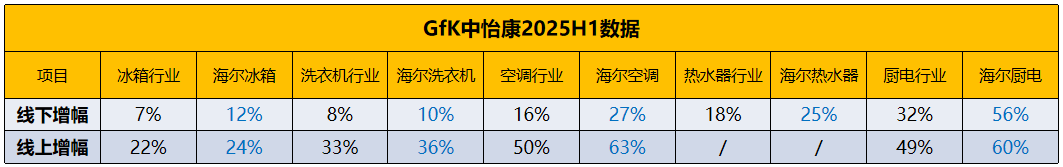 那么,家电企业们表现如何?数据来了。近日,市场研究机构GfK中怡康发布2025上半年市场数据:海尔智家拿下线上、线下市场份额双第一,增速领跑。