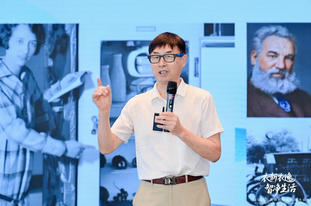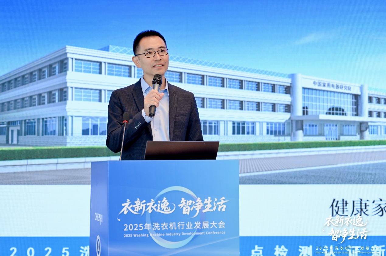 中国家用电器研究院院长助理吴海涛为大会致辞。吴海涛表示,洗衣机行业迎来新一轮升级周期,高端化、绿色化、智能化成为核心发展方向。在需求侧,市场从增量扩张转向存量精耕,以旧换新政策与健康消费理念正激发换新热潮;供给侧则通过AI智能识别、热泵低温柔烘等技术创新,推动产品在洗净效果、衣物护理、健康除菌等维度全面升级。值得注意的是,在"双碳"目标驱动下,行业加速全产业链绿色转型,从产品设计、生产制造到回收利用的低碳实践正形成新的竞争壁垒。与此同时,中国品牌凭借技术标准与服务体系的综合优势,积极开拓多元化海外市场,特别是通过绿色技术突破应对国际贸易壁垒。未来行业竞争将更注重核心技术突破、场景化创新和可持续发展能力的协同发展。