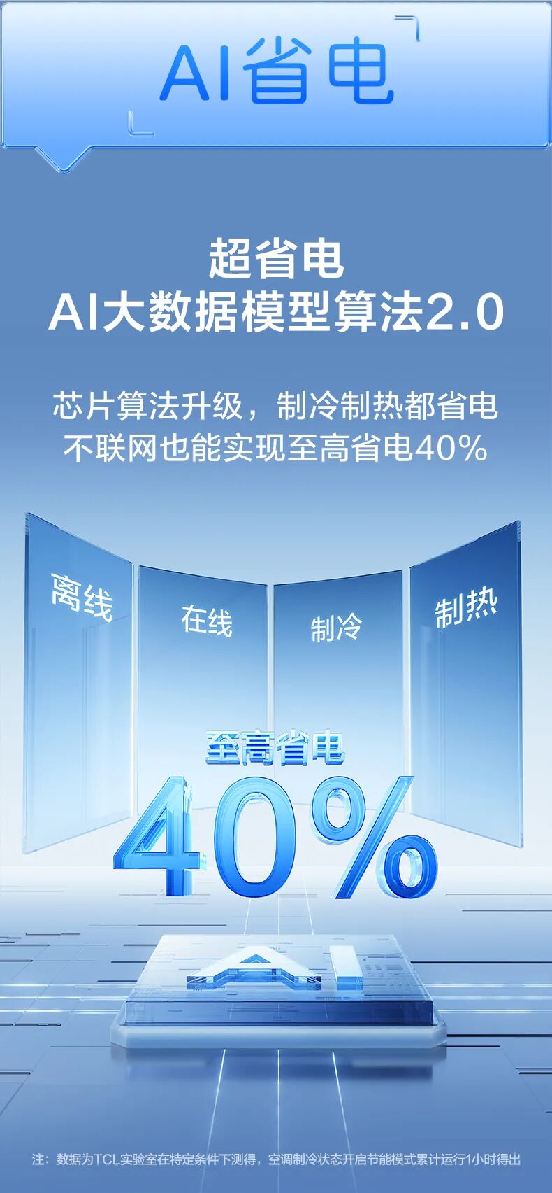 在AI语音交互上,TCL小蓝翼P6 Plus AI健康空调第二代离线语音实现了“用户自由说”,无需联网即可实现人机的语音自由交互。甚至特有的声源定位能根据用户的声音精准识别人体位置,实现“风向人吹”或“风避人吹”。AI省电也是一大创新,其采用AI大数据模型算法2.0,芯片算法升级,不联网也能实现至高省电40%。