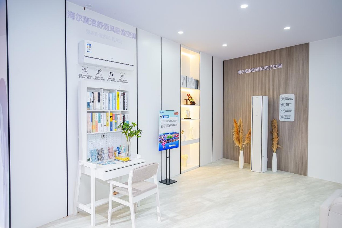 海尔空调以“AI健康”为核心,像赛场上的防守主力。麦浪舒适风、小红花聪明风等系列空调凭借 AI 人感雷达、AI人感控风等技术精准判断人体位置,解决冷风直吹的健康困扰;