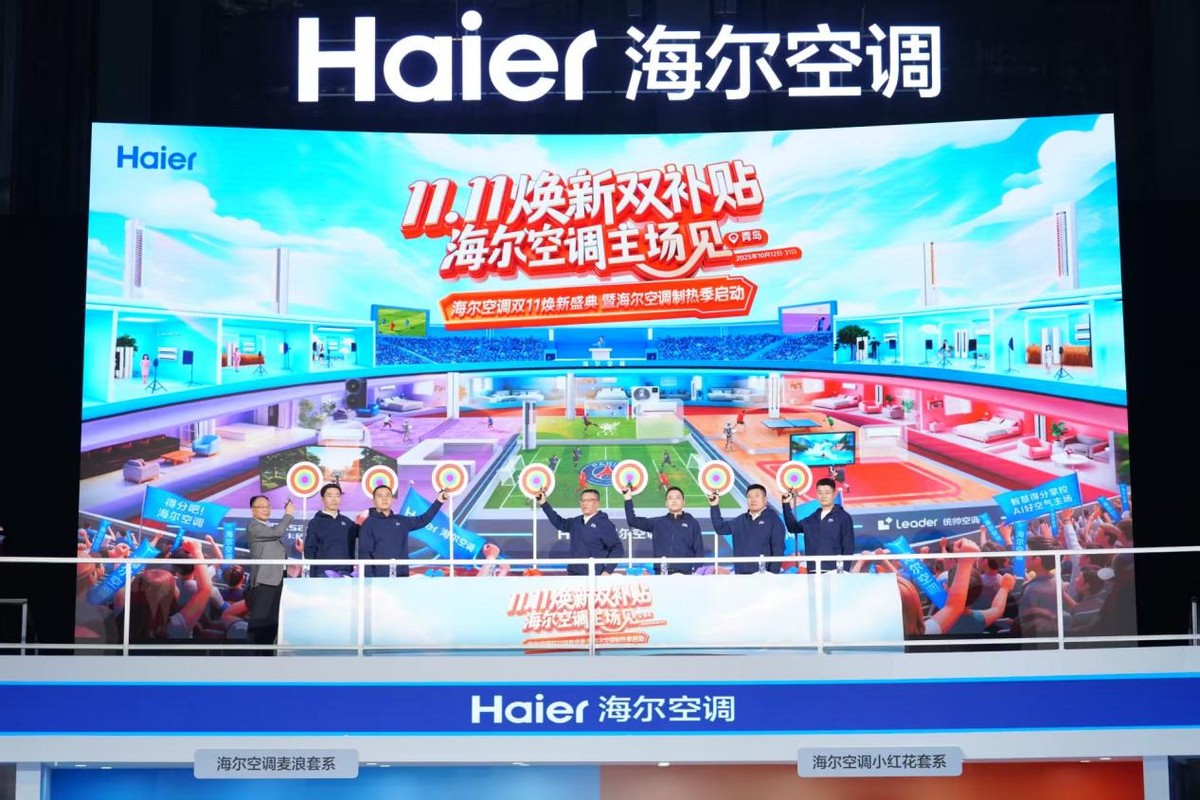 在业绩领跑基础上,海尔空调率先打响双 11 第一枪。10月12日,在青岛举办的“海尔空调双11焕新盛典”上,一场近千人参与的线下众测活动同步启动。用户通过亲手触摸、亲耳聆听与亲身感受,开启了一场沉浸式的AI好空气体验之旅。